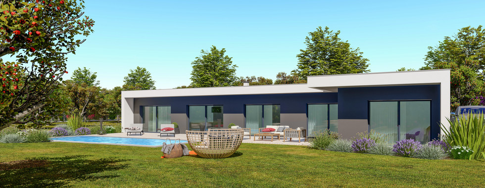 Les principaux espaces de vie, ainsi que la piscine privée, sont orientés vers le sud, ce qui permet de profiter de la lumière naturelle et de l'exposition au soleil. Une conception qui maximise les plus de 300 jours d'ensoleillement par an au Portugal !